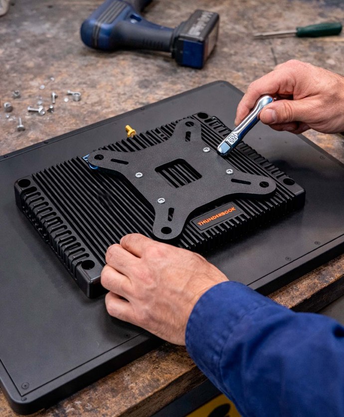 Compatible con VESA 75 y 100, permite su instalación en brazos articulados o soportes industriales. Esta flexibilidad facilita ajustar la posición del panel según las necesidades operativas, mejorando la ergonomía y la visibilidad en el puesto de trabajo.