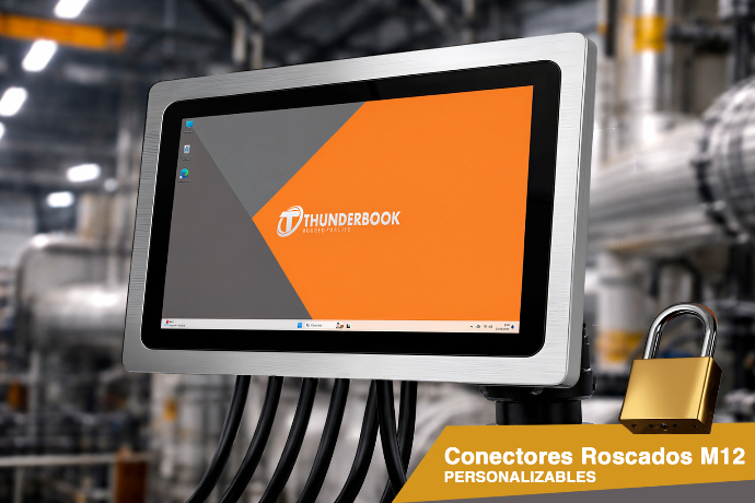 Configura tu Panel PC Industrial de Inox con puertos M12 roscados totalmente personalizables, diseñados para garantizar conexiones firmes y estables incluso en entornos con vibraciones, humedad o polvo. Gracias a su sistema de conexión industrial, se evitan desconexiones