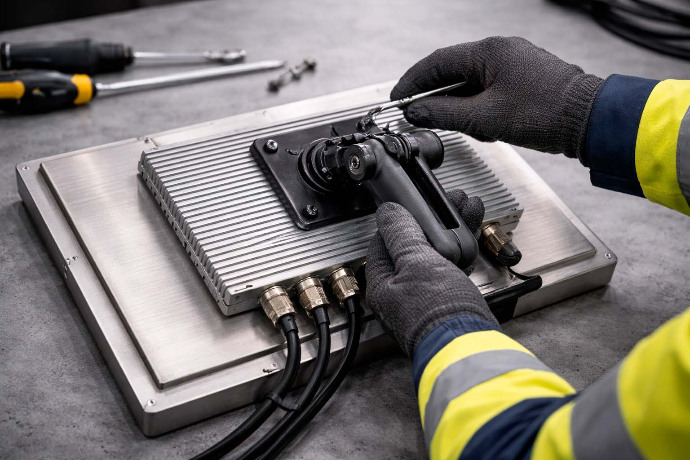 Compatible con VESA y sistemas de anclaje RAM, el HERCULES W156 permite una instalación flexible en brazos articulados, soportes industriales o estructuras móviles, adaptándose fácilmente a cualquier entorno de trabajo. Su diseño facilita una integración rápida, limpia y segura en cuadros eléctricos, estaciones de control o maquinaria.